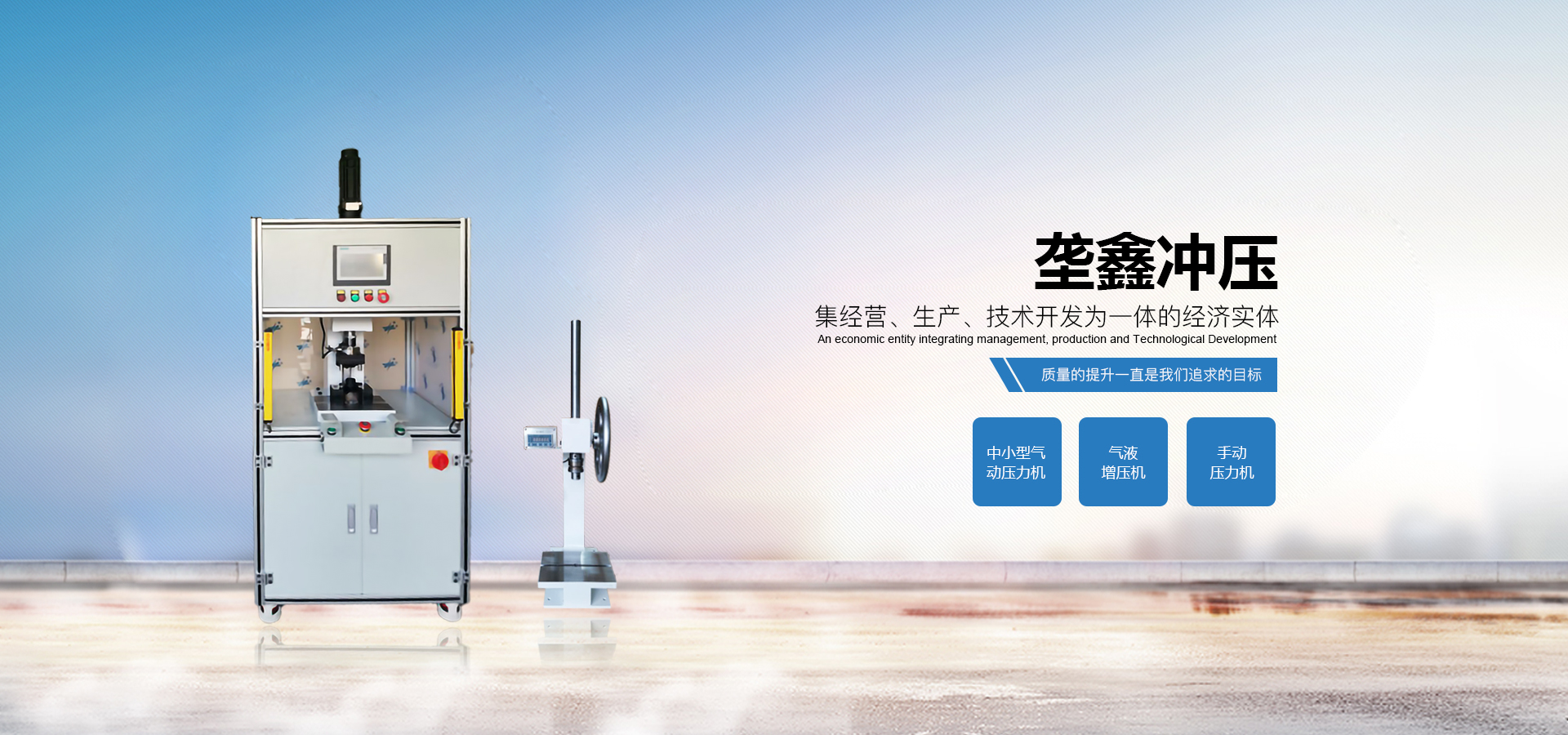 煙臺壟鑫沖壓設(shè)備有限公司是集經(jīng)營、生產(chǎn)、技術(shù)開發(fā)為一體的經(jīng)濟實體,專業(yè)致力于中小型壓力機、非標(biāo)壓力機的設(shè)計開發(fā)和制造。在引進德國、日本等國家先進的鉚壓控制技術(shù)及機器設(shè)計理念的基礎(chǔ)上,結(jié)合相關(guān)行業(yè)的實際需要,開發(fā)出各種臺式、落地式氣動壓力機、手動壓力機、氣液增壓機、氣液增力缸、旋鉚機、無鉚釘鉚接機等鉚接設(shè)備。產(chǎn)品應(yīng)用領(lǐng)域廣泛,適用于汽車零件、電子、電器、家電、包裝、五金、等行業(yè)。公司視質(zhì)量為生命,并一貫遵循對每一臺產(chǎn)品負責(zé),對每一位用戶負責(zé),真誠為您服務(wù)。 自公司成立以來,秉承“誠信,創(chuàng)新,專業(yè)”的經(jīng)營理念,以優(yōu)質(zhì)的產(chǎn)品,完善的售后服務(wù),樹立良好的品牌形象,服務(wù)于廣大新老顧客。我們竭誠于各位同仁攜手并進,共謀發(fā)展。